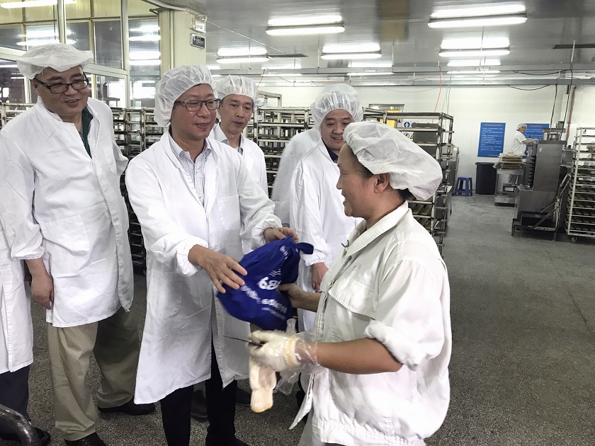 8月4日,梅林股份總裁王國祥,梅林股份副總裁、冠生園總經理藍雪,冠生園副總經理吳堅等一行冒著高溫到冠生園益民公司和華佗公司,慰問正在炎熱高溫下忙碌生產的職工,并送上慰問品。