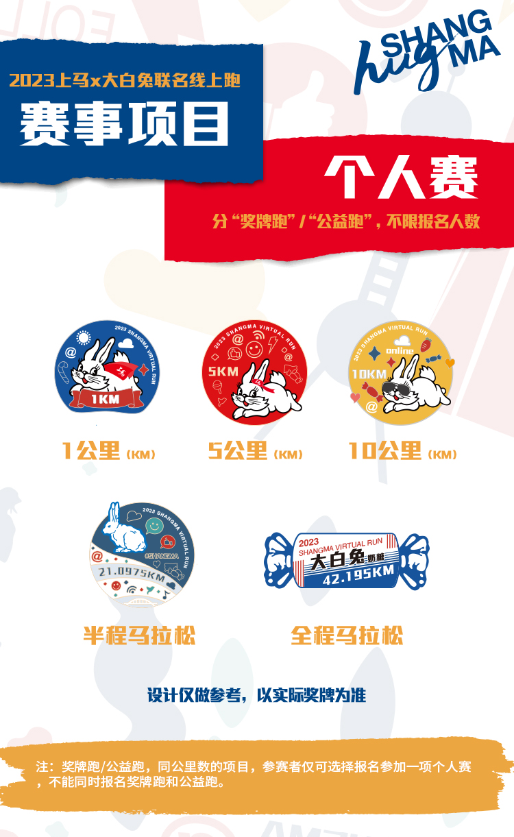 若沒有抽中上馬線下比賽名額,還可報名參加大白兔x上馬聯名線上跑。若按照競賽要求完賽的,可以獲得特別定制款大白兔完賽實體獎牌哦!